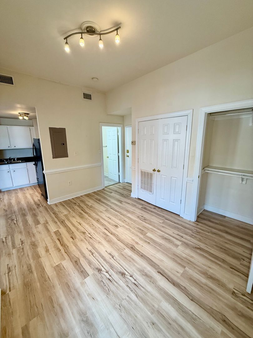 Large studio apartment, within walking distance to VCU. Apartment comes with a stove, refrigerator, microwave, central heat, and central air conditioning. Laundry on site and water, sewer, and trash are included in the rent. Tenants are responsible for electricity and cable. Flooring color in the unit may be different than the photos.